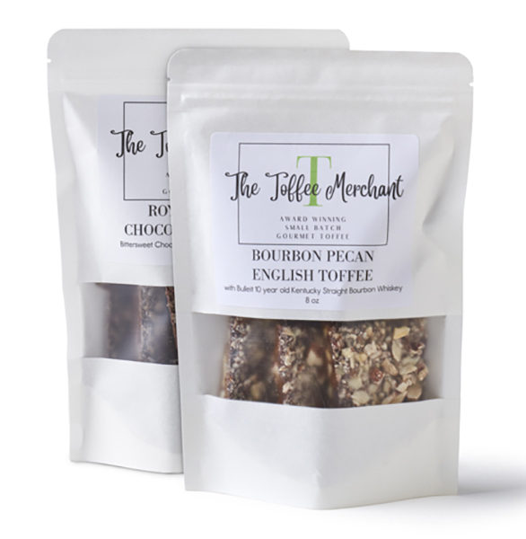This award-winning toffee is made with 10-year-aged bourbon. The rich oak notes, along with caramel flavors, semi-sweet chocolate, toasted pecans and almonds, will make you quickly understand why this has been recognized as the top toffee in America by International Chocolate Salon. Made in Arizona. 8 oz. bag.