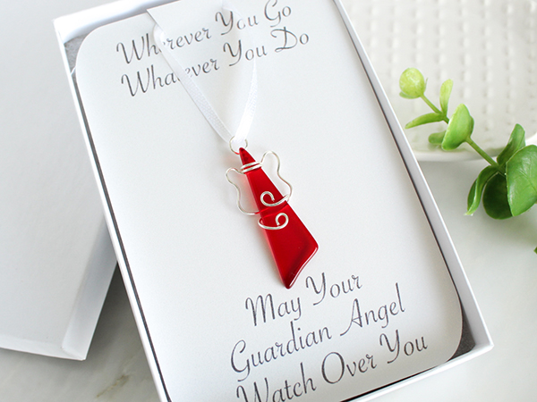 Handcrafted from upcycled stained glass and hand-formed, silver-plated wings, the angel is a delicate symbol of love, protection and peace. ¾ x 2". Made in Arizona. Handmade items may vary from photos.