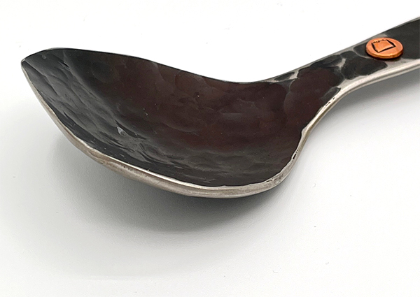 This heavy-duty ice cream scoop is hand-forged from 304 stainless steel, ensuring durability. The fullered handle provides a comfortable grip while you effortlessly cut through the hardest ice cream with the beveled front edge. The versatile shape also makes it great as a general-purpose serving spoon. Made in Arizona. 2¾ x 9½". Handmade items may vary from photos.