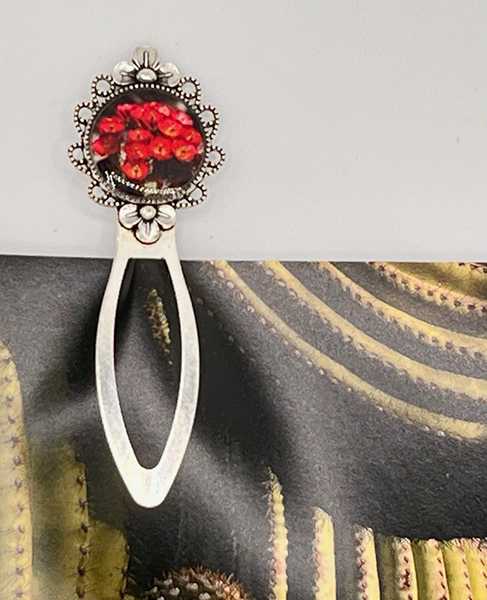 This handmade metal-framed bookmark features an Arizona photographer’s resin-protected image of a blooming scarlet hedgehog cactus, symbolic of strength and resilience. Packaged in a protective sleeve, this sturdy bookmark is an ideal gift or stocking stuffer for botanists, nature lovers and ardent readers. Measures 1 x 3¼". Made in Arizona. Handmade items may vary from photos.